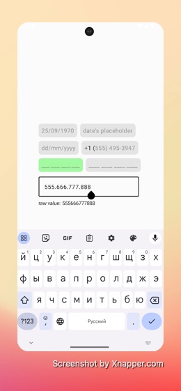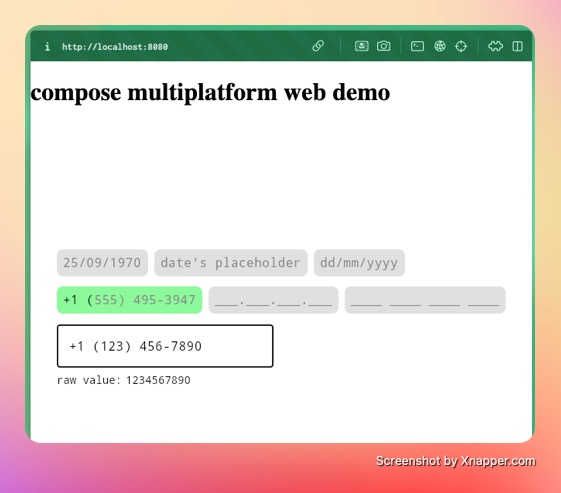 Solves input-mask challenges in compose projects, offering customizable visual transformations for text fields. Supports placeholders, text styling, and demonstrates use with date formatting.