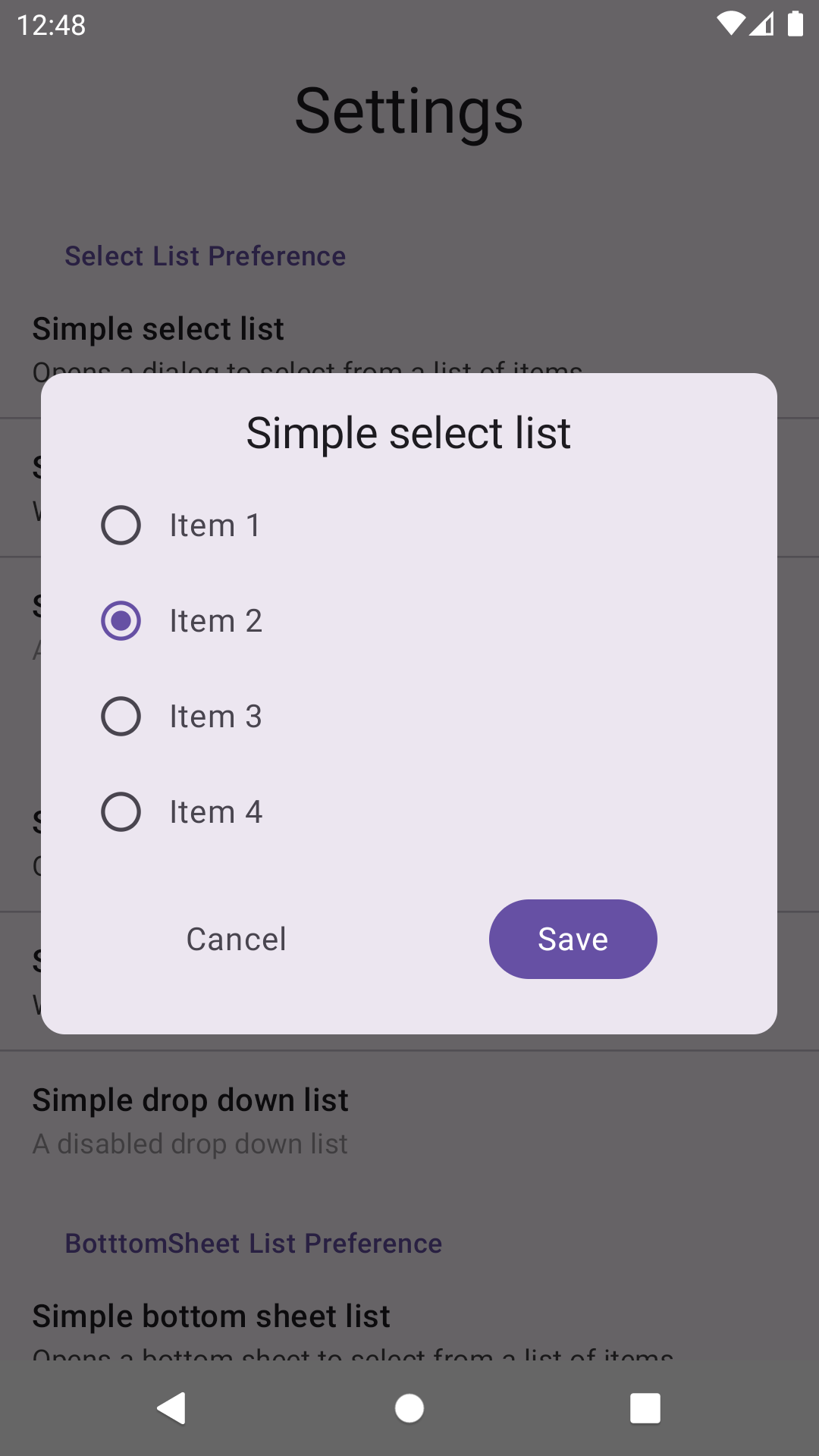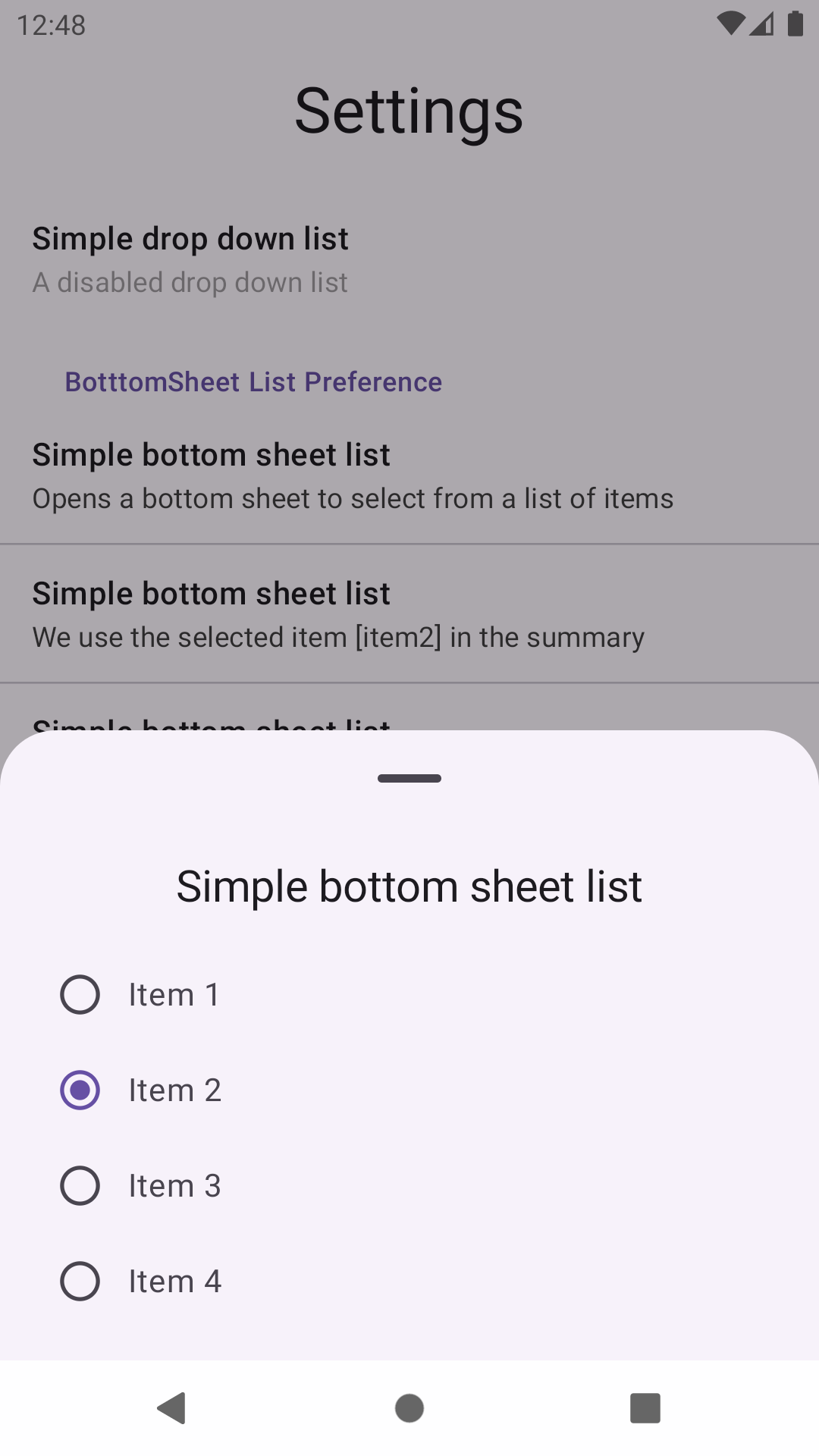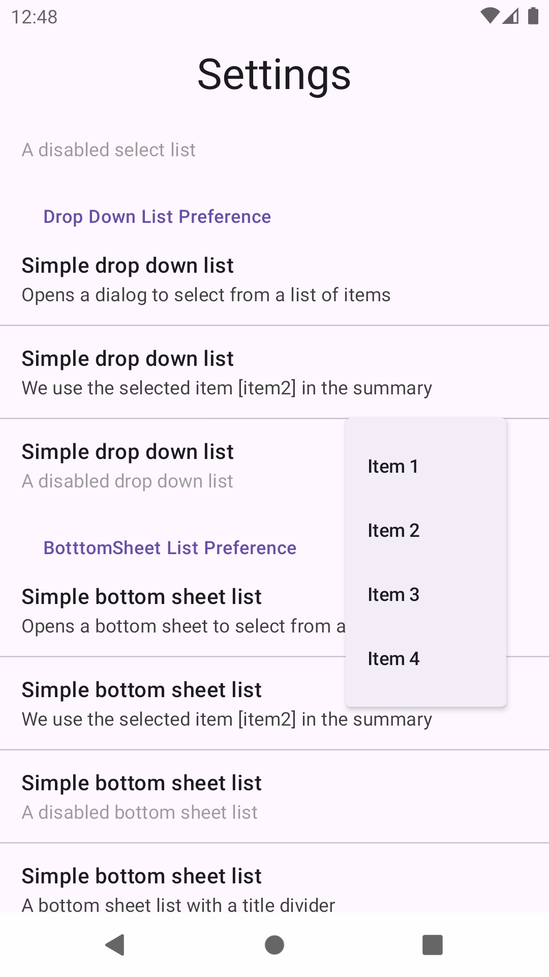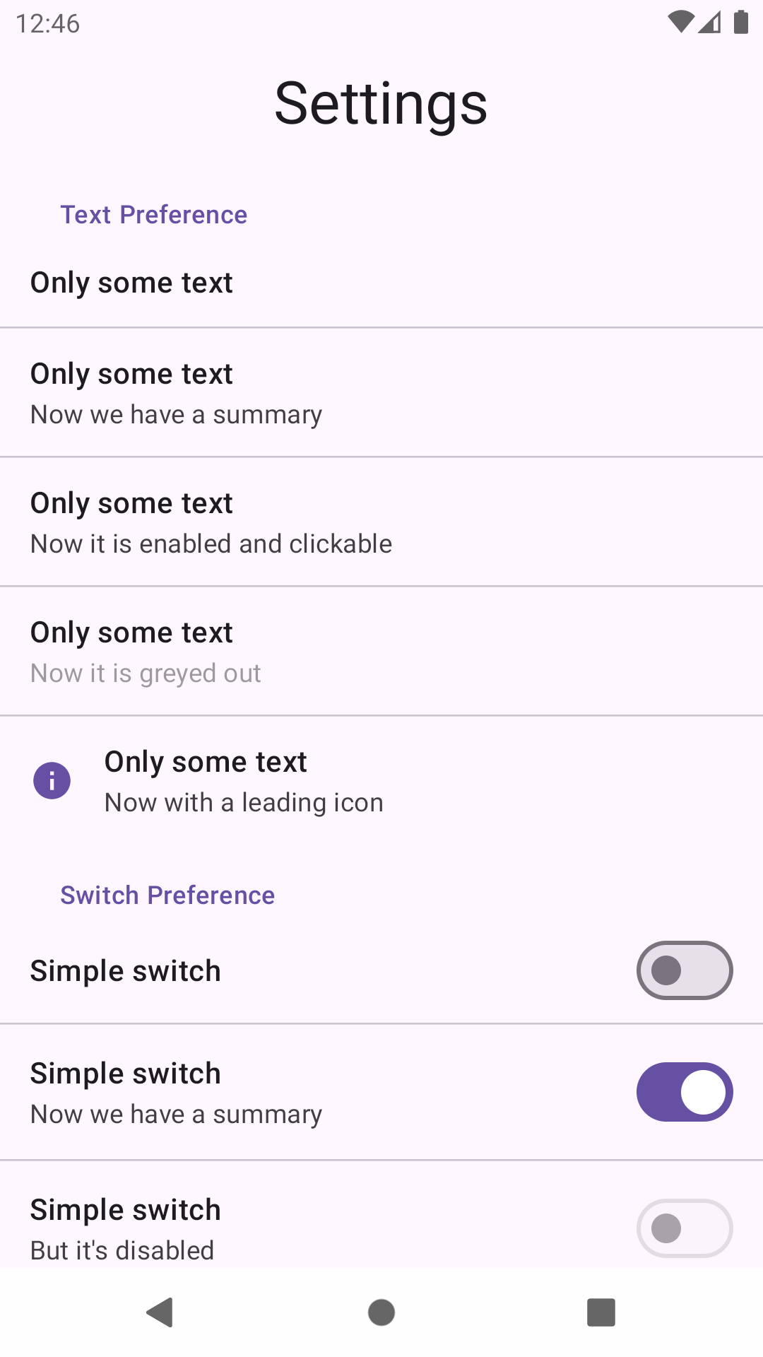 )And that's it! You can create your whole preference screen in this way, and you can modify the individual parameters of each preference composable to achieve the functionality you require. If something is missing, please create an Issue so we can discuss possible solutions.
