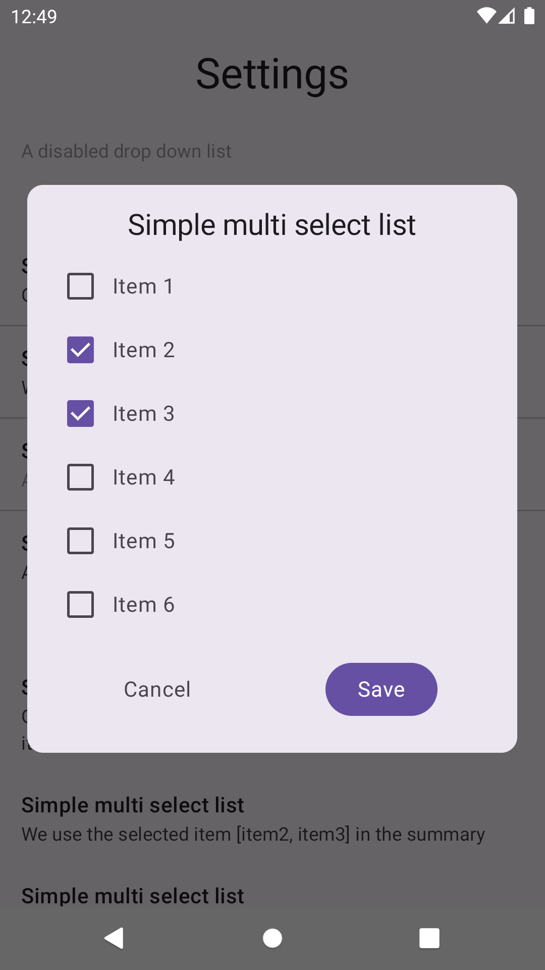 summary = { Text(text = "Opens a dialog for selecting multiple items from a list of items") }