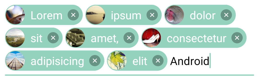 implementation "io.github.dokar3:chiptextfield-m3:latest_version"Default (filled style)