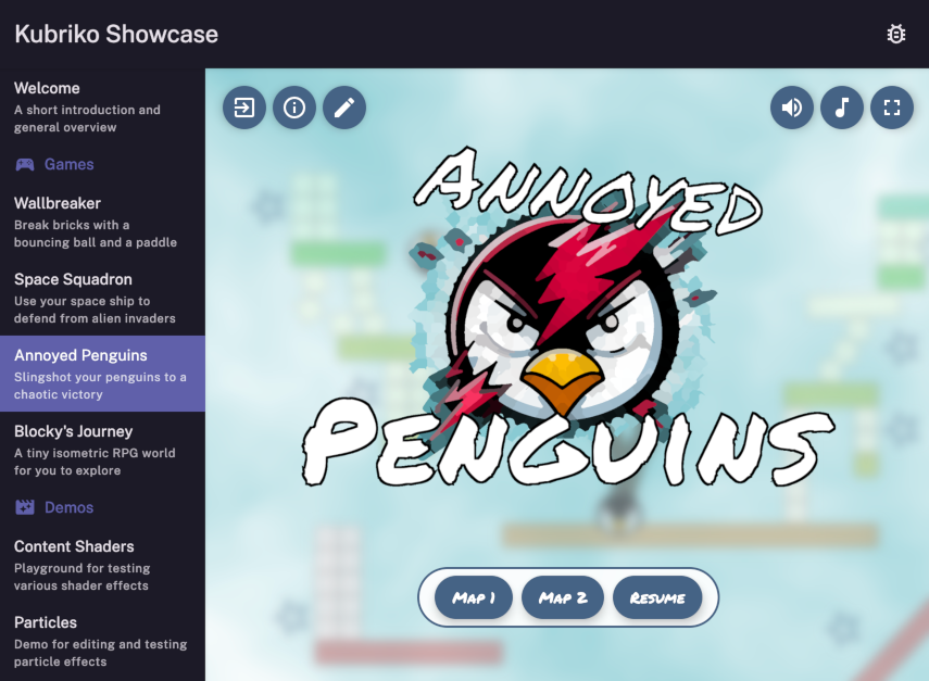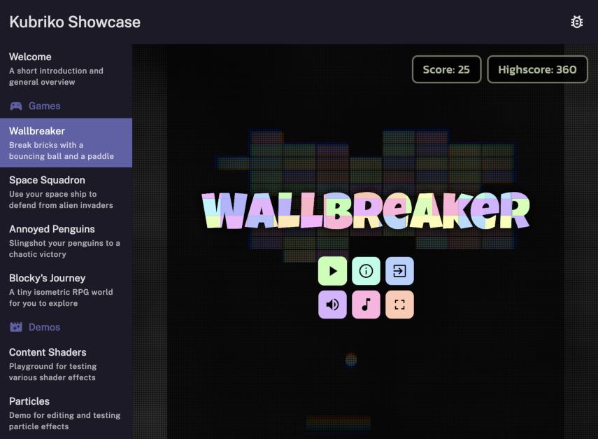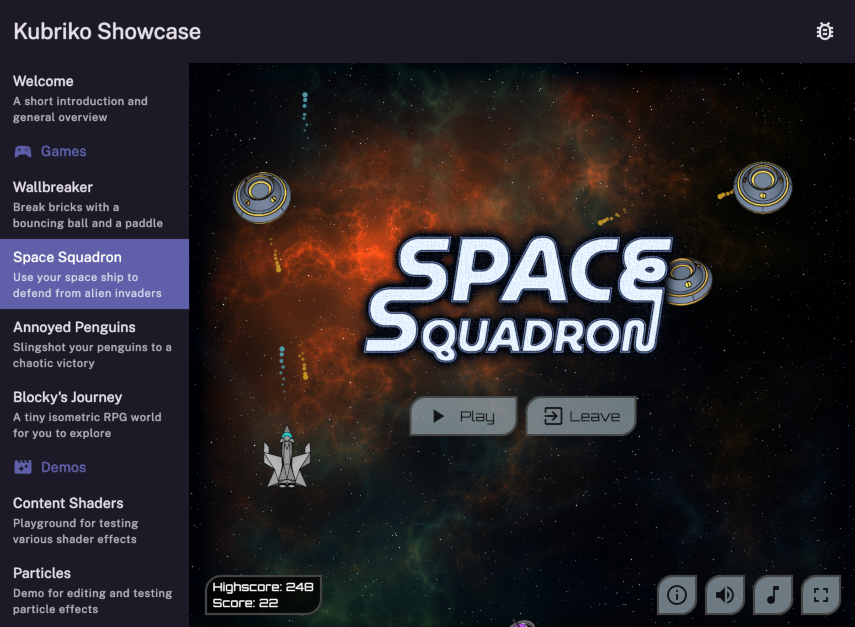 [!NOTE] Some of the links above might not be available / up to date, so the best way to try Kubriko Showcase is to build the project yourself.