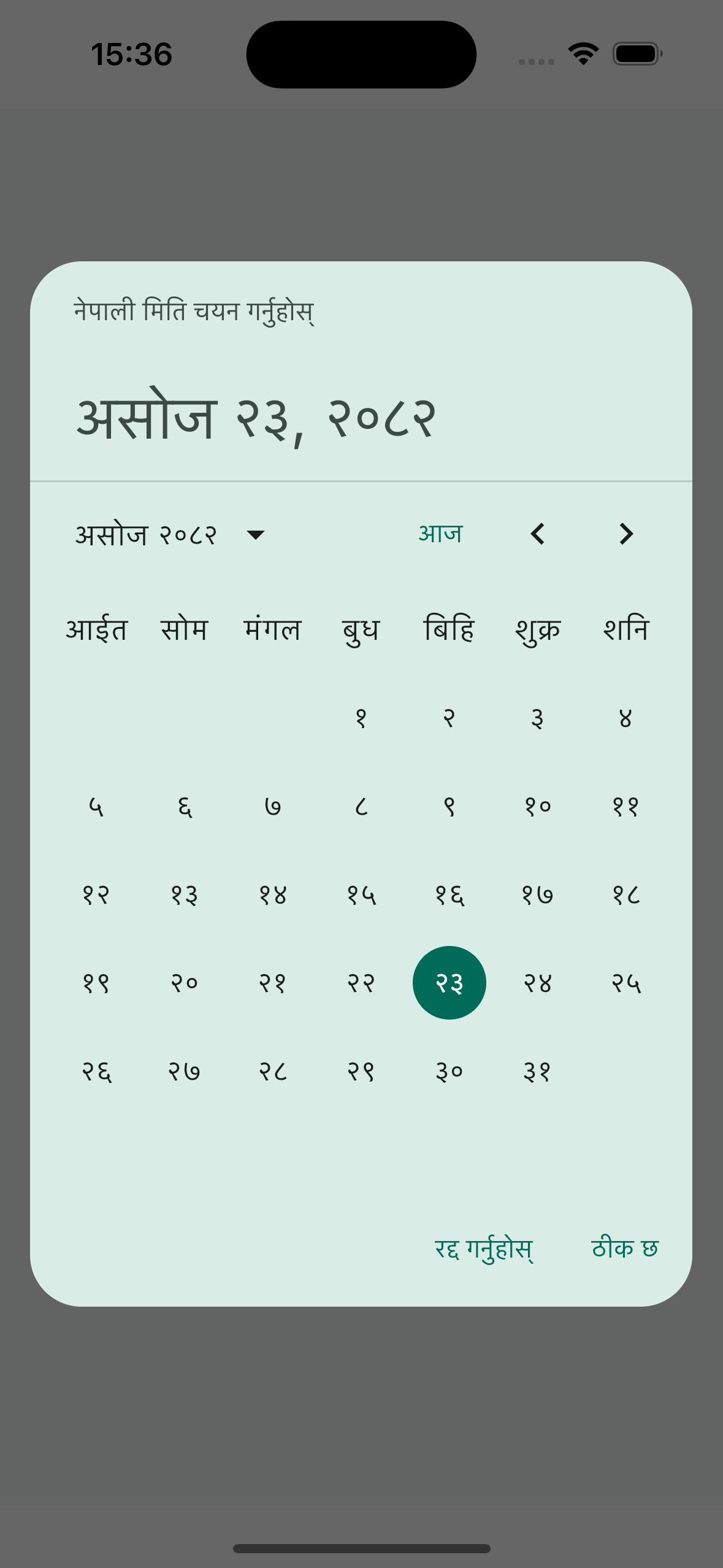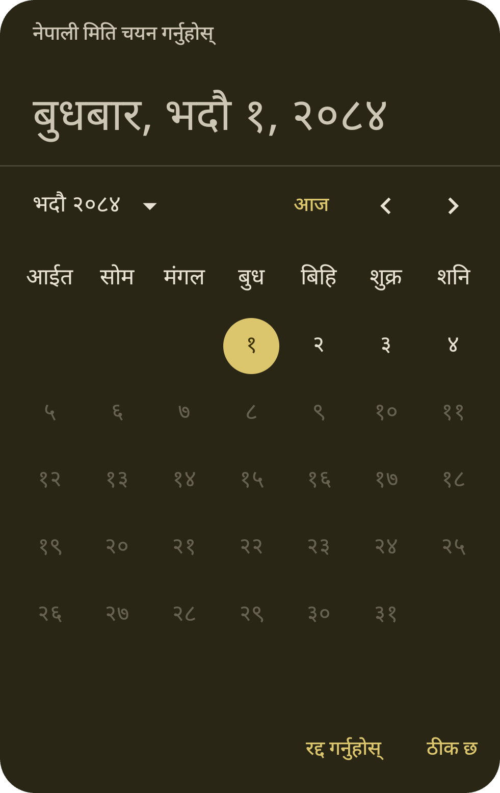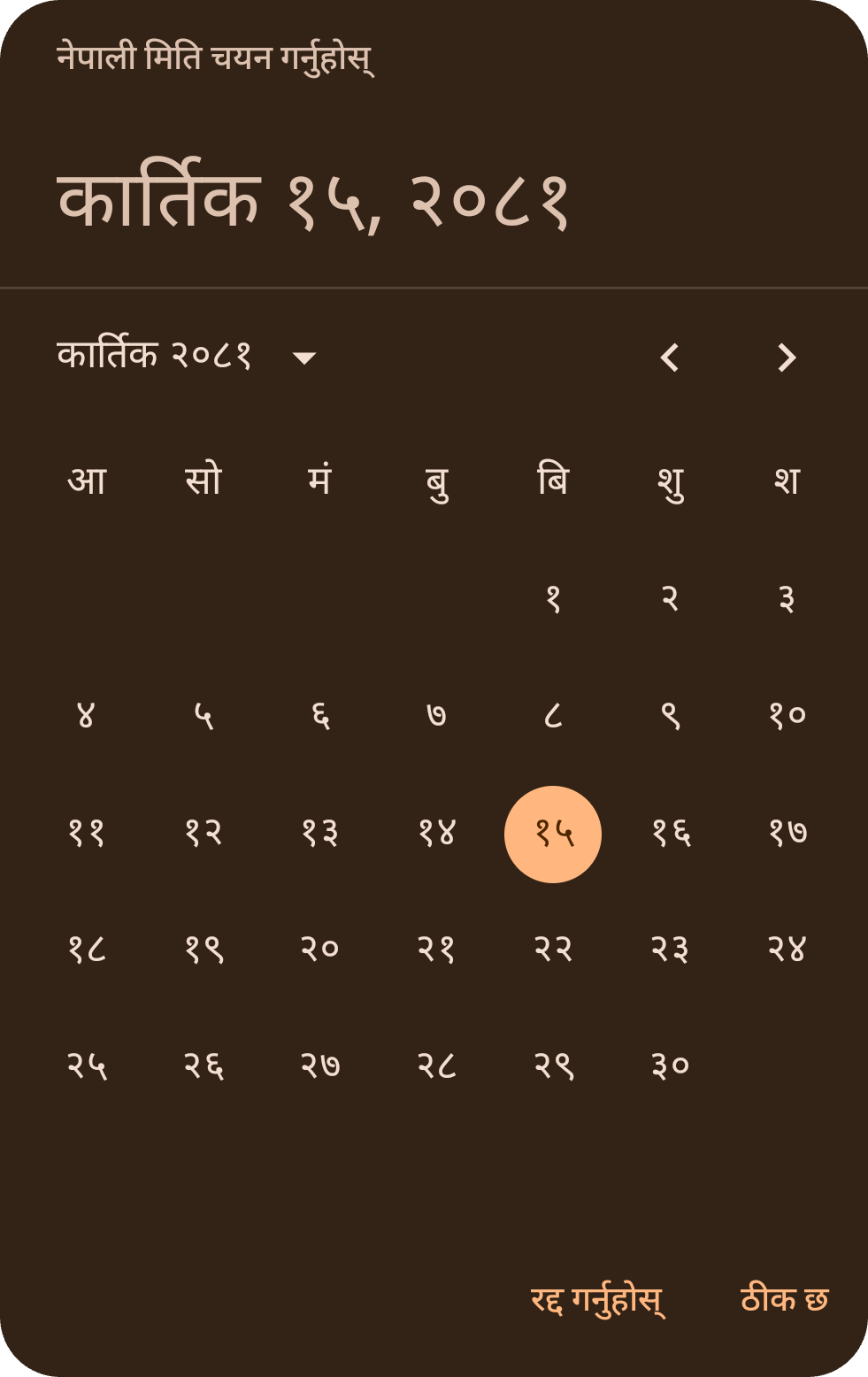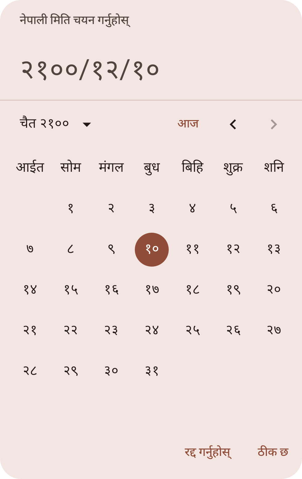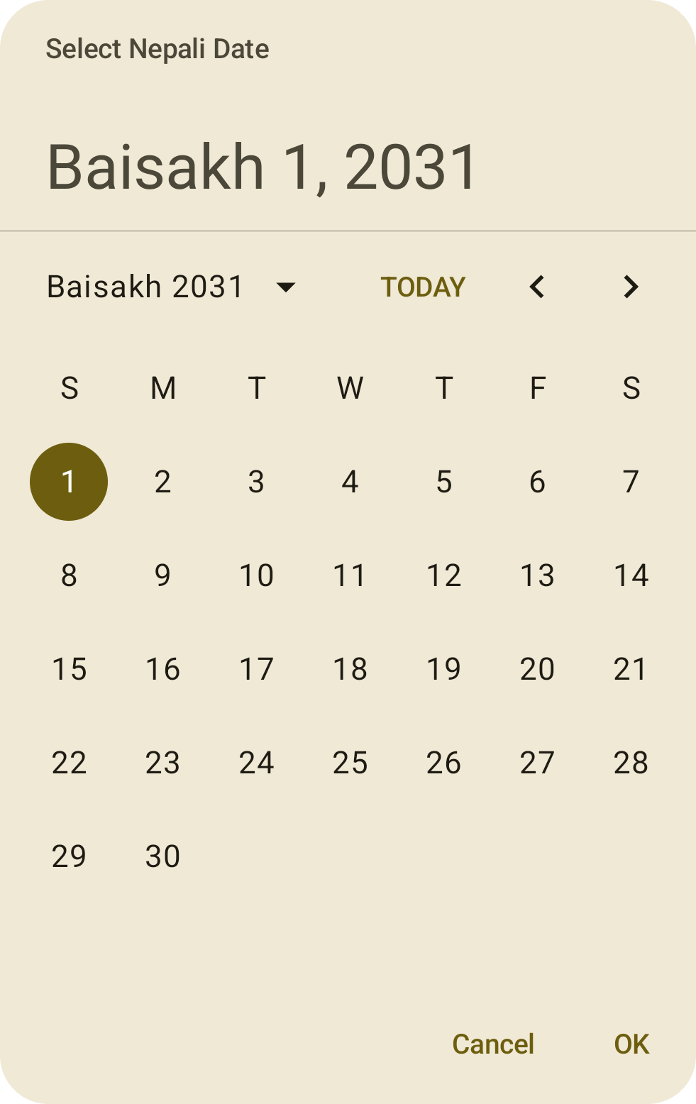 NepaliDatePicker(rememberNepaliDatePickerState())