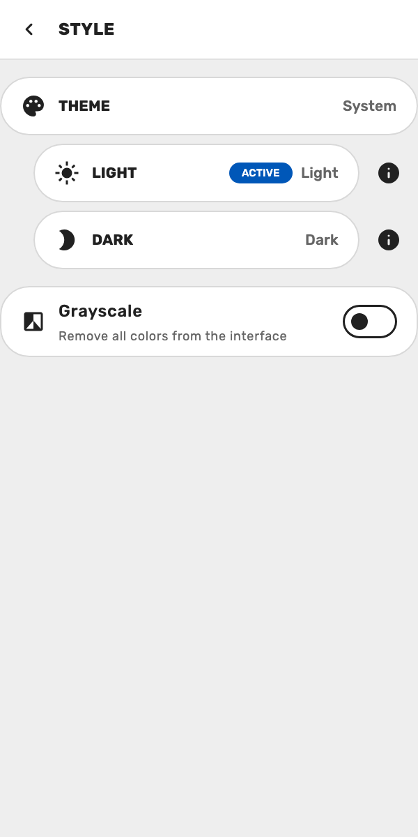 )PersistentPreferenceThemeScreen lets users pick between system-based or manual theme selection. In system mode, separate light and dark style pickers are shown: